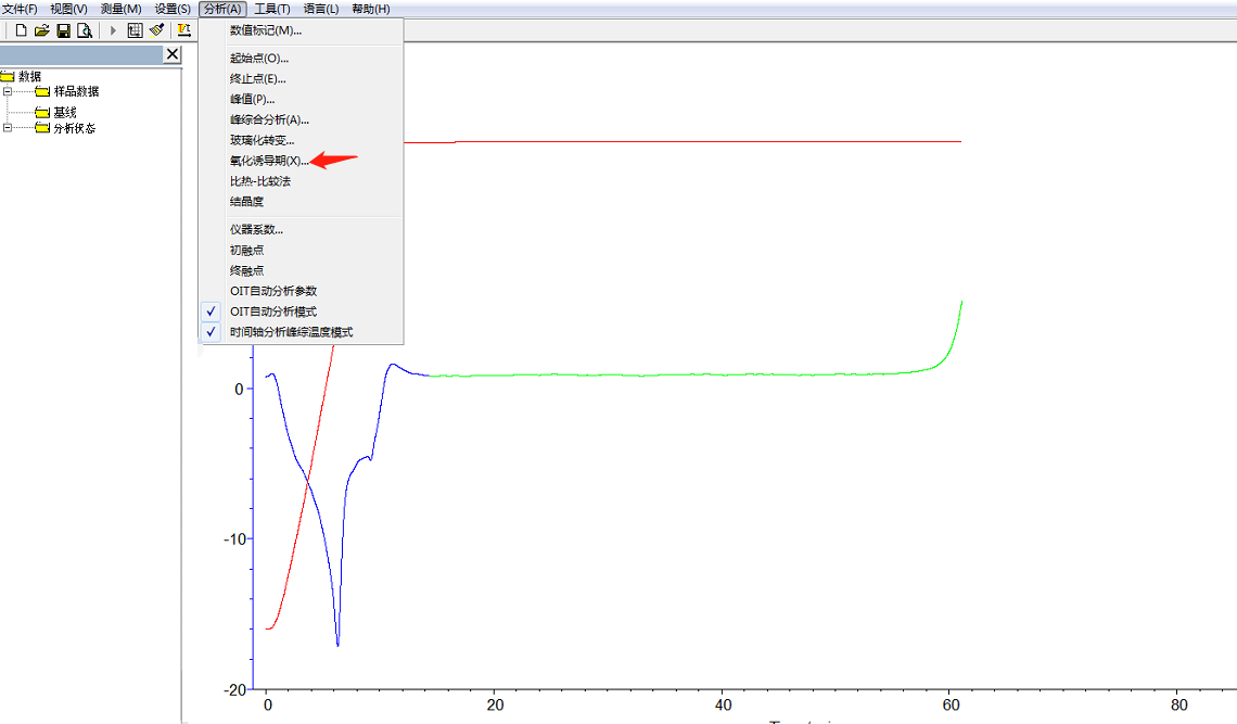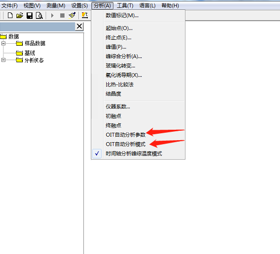 4、软件带OIT自动分析功能,勾选OIT自动分析模式,OIT自动分析参数,操作步骤及分析参数设置如下图: